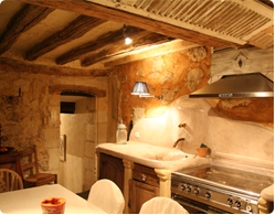 Alliance parfaite du fonctionnel et de l'authentique: lave-linge, lave-vaiselle, gazinière 5 feux, vaste four, 2 fours annexes (micro-ondes , rotissoire). |